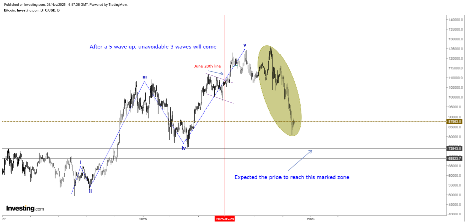 Bitcoin’s recent crash from $125,000 to $80,000 was not sudden — it was visible well in advance through clear wave signals and market patterns. In June 2025, I highlighted these bearish structures, expecting a sharp decline. This blog breaks down those signals and explains how the Elliott Waves predicted this move with precision.