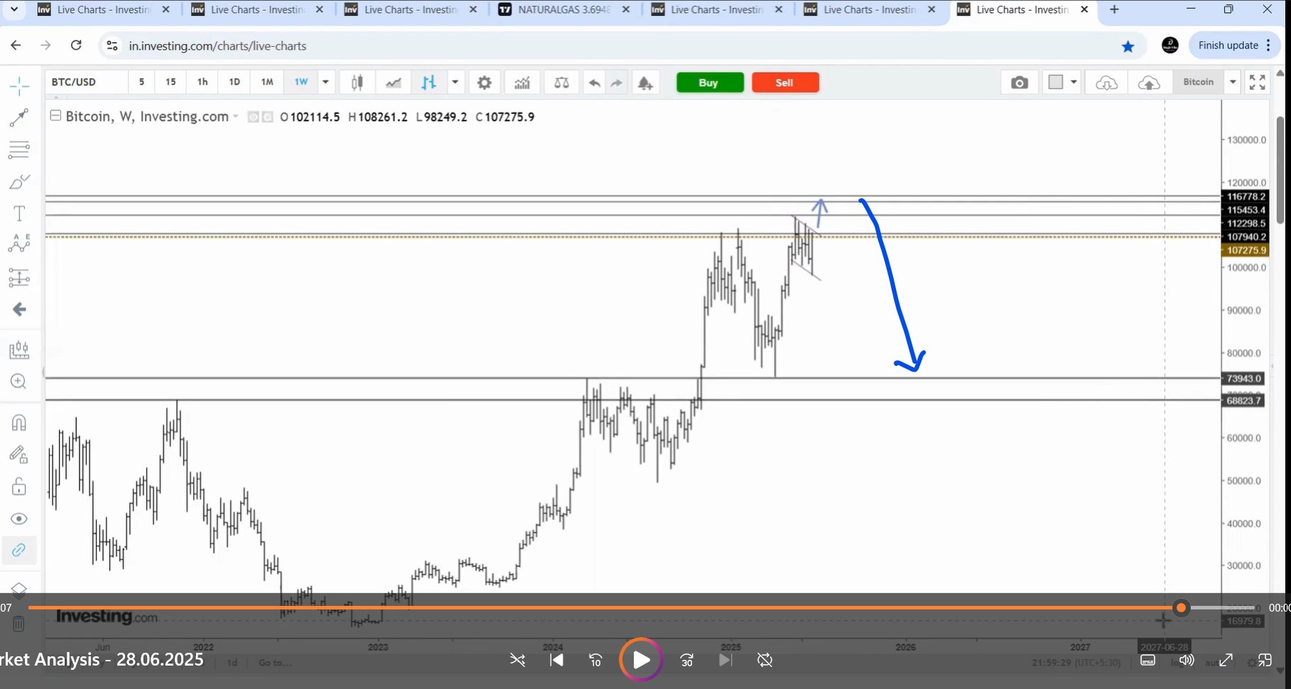 On June 28th, when Bitcoin was trading around $107,275, I discussed the potential continuation of the uptrend towards $116,000+. I also informed viewers that if Bitcoin entered that zone, it could act as a major resistance area, increasing the probability of a sharp decline. Based on the wave structure, I highlighted that the price could fall into the $75,000–$69,000 range.