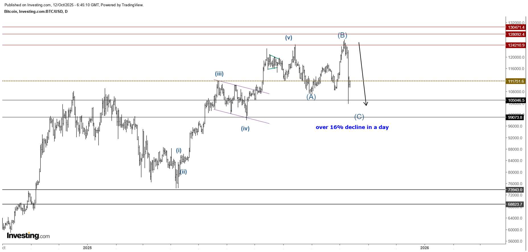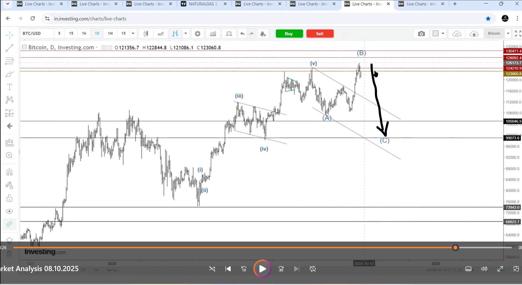 To get the precise reversal zone, I analysed the five sub-waves inside the final 5th wave (since every impulse wave contains five smaller waves). Based on this structure, I marked the potential turning point near $125,000.